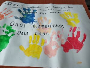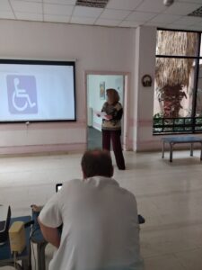 Παρουσιάσαμε μια σειρά από videos, εικόνες, τραγούδια, μιλήσαμε, προβληματιστήκαμε για την καθημερινότητα και τα προβλήματα που αντιμετωπίζουν τα άτομα που δεν βλέπουν , που δεν ακούν, που μετακινούνται με αναπηρικό αμαξίδιο, για τα άτομα με αυτισμό, για τα άτομα με νοητική υστέρηση, πραγματοποιώντας βιωματικές δραστηριότητες.
