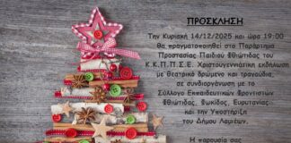 Πρόσκληση σε Χριστουγεννιάτικη Εκδήλωση στο Παράρτημα Προστασίας Παιδιού Φθιώτιδας του Κ.Κ.Π.Π.Σ.Ε